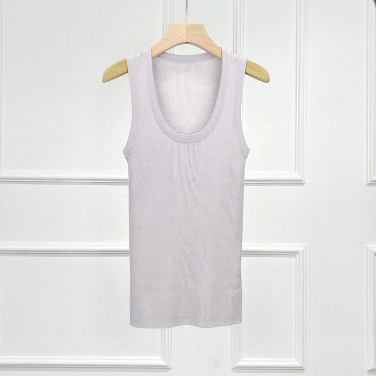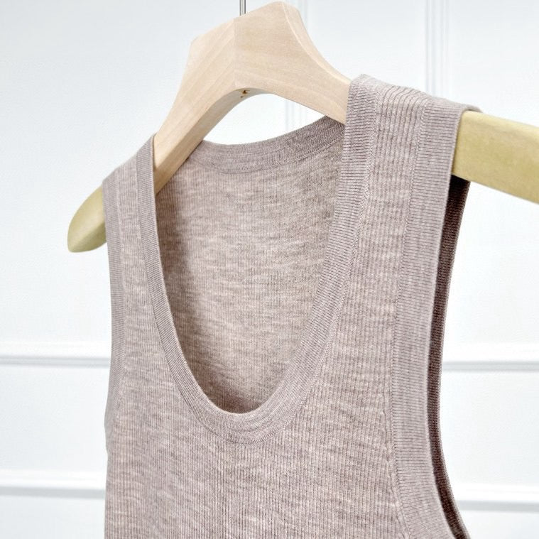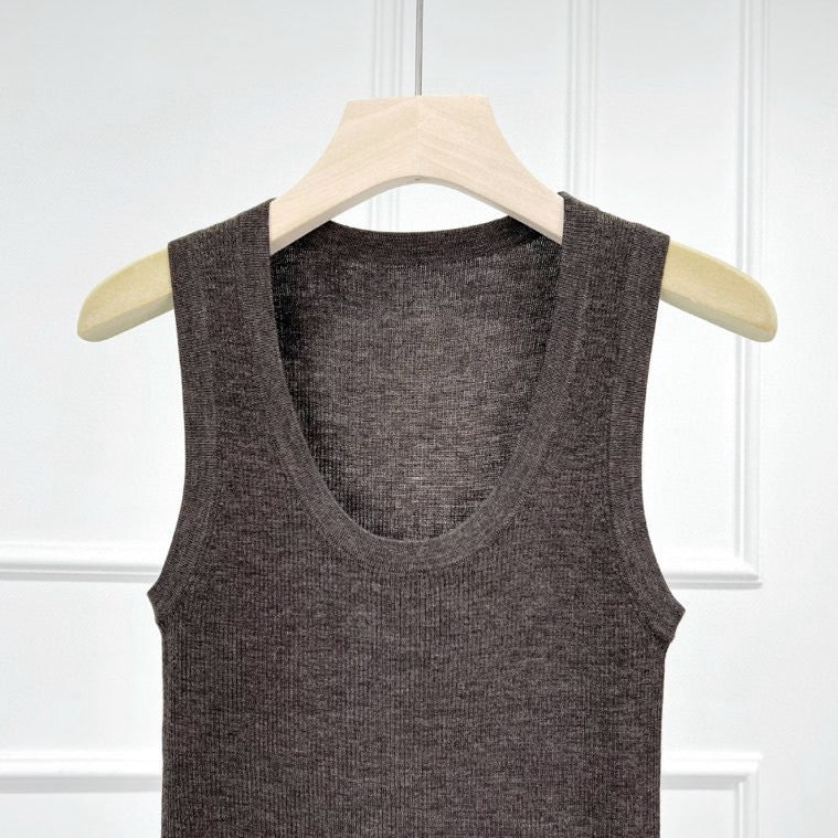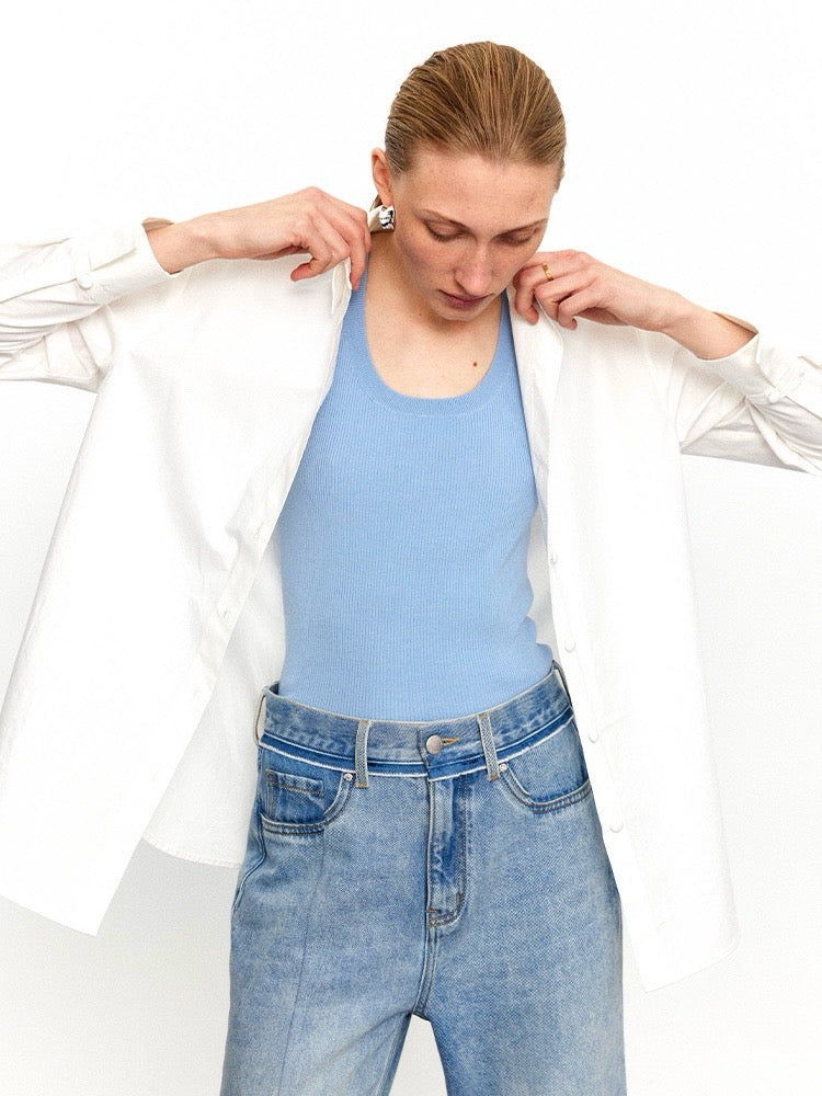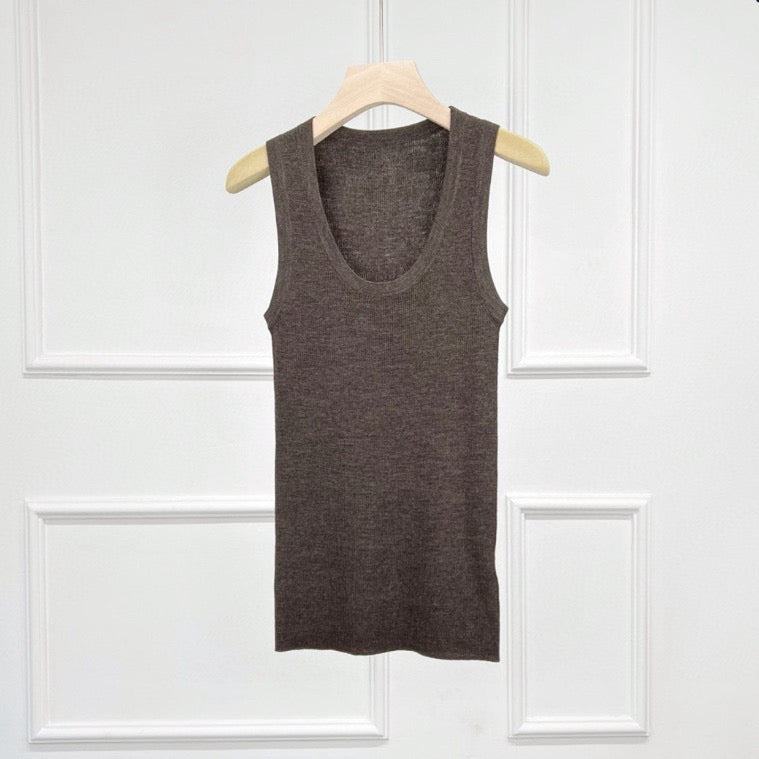 Featuring a minimalist sleeveless silhouette with a refined U-neckline and a subtly tailored yet relaxed fit, the Marina tank strikes the perfect balance between form-flattering and easygoing. Wear it alone for a polished casual look, or layer beneath blazers and sweaters for sophisticated office styling or chic streetwear.